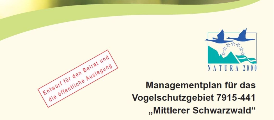 Der Natura 2000-Managementplan für das Vogelschutzgebiet „Mittlerer Schwarzwald“ liegt im Entwurf vor und wird in der Zeit vom 17.11.25 bis 09.01.26 öffentlich ausgelegt.